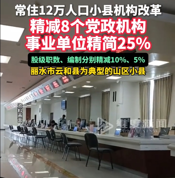 浙江丽水云和县是一个山区县,人口少,常住还不到12万。就在近段时间,当地公布机改方案,四条重磅“新政”可谓“几家欢乐几家愁”。